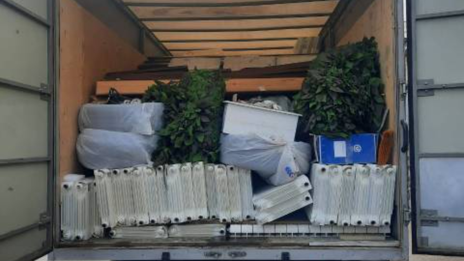 Груз включает в себя: радиаторы, шины для автомобилей, маскировочные сети и другие необходимые расходные материалы и предметы.